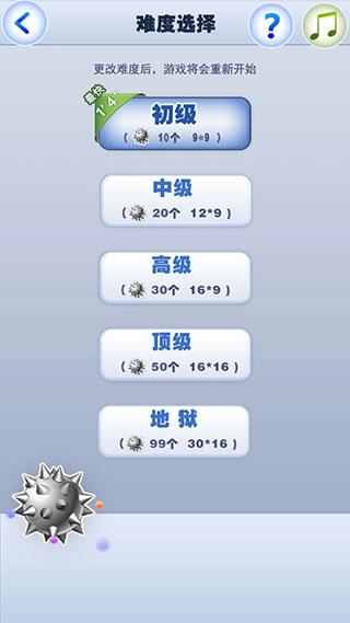 初级、中级、高级、顶级等扫雷难度循序渐进。