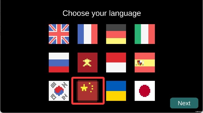 1、进入游戏后首先选择我们的游戏语言,图示位置是简体中文。