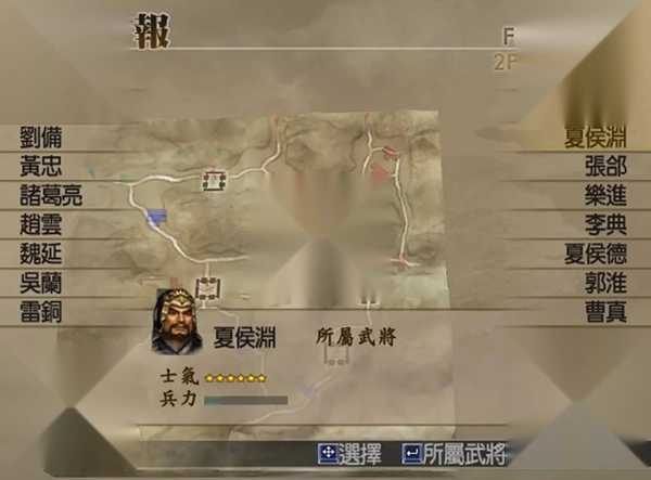 夏侯渊位于敌军阵营前,离我们的起始位置不算远。