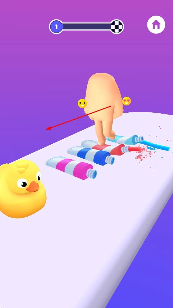 1、操控角色在路径移动,通过滑动操作调整方向,收集彩色颜料道具,为完成关卡奠定基础。