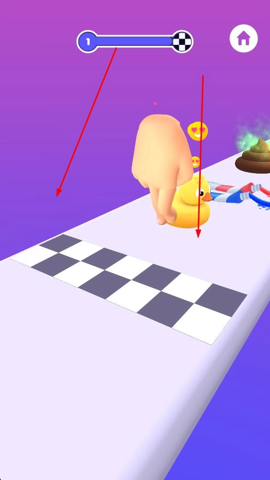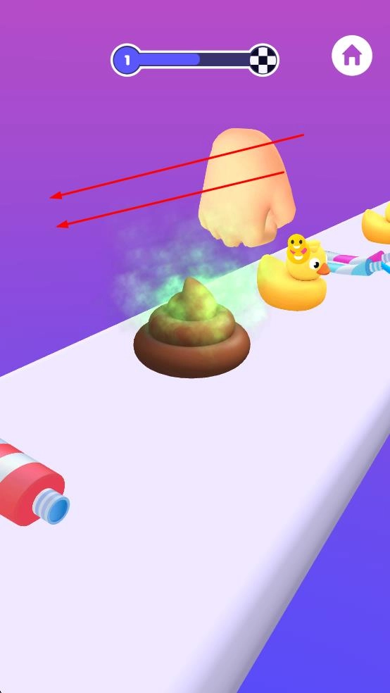 2、避开绿色便便等障碍元素,留意黄色小鸭分布,优化移动路径提升关卡进度。