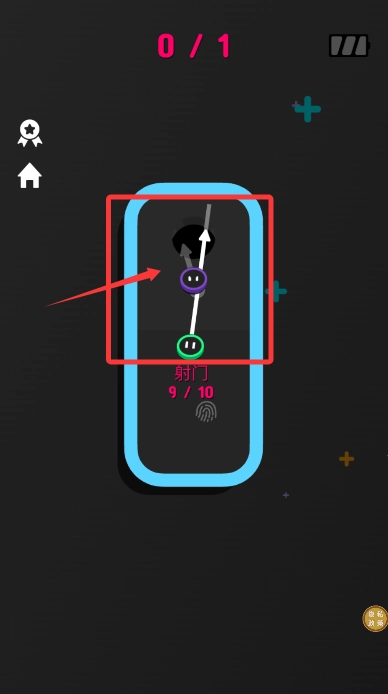 2、调整角度对准紫色靶心弹出小球,每次尝试需把握最佳时机。