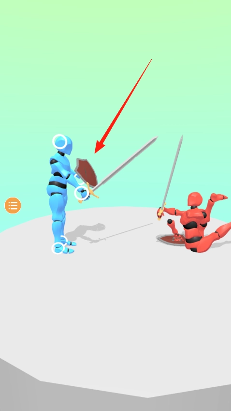 2、两个机器人都倒地时,要快速点击屏幕让蓝色机器人先站起来,长剑交叉时会触发QTE环节,按照提示滑动屏幕能发动强力劈砍,把红色机器人彻底击倒。