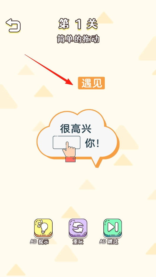 1、对话框内的空白区域需通过拖动文字块来补全句子,完成该互动即可进入下一环节;底部黄、紫、绿三个按钮依次对应提示、重玩与跳过功能,新手建议优先尝试提示按钮。