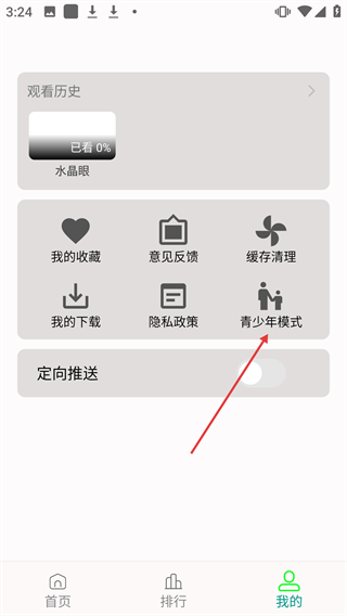2、点击【我的】,可找到【青少年模式】等功能入口。