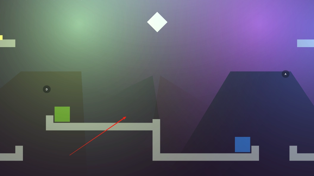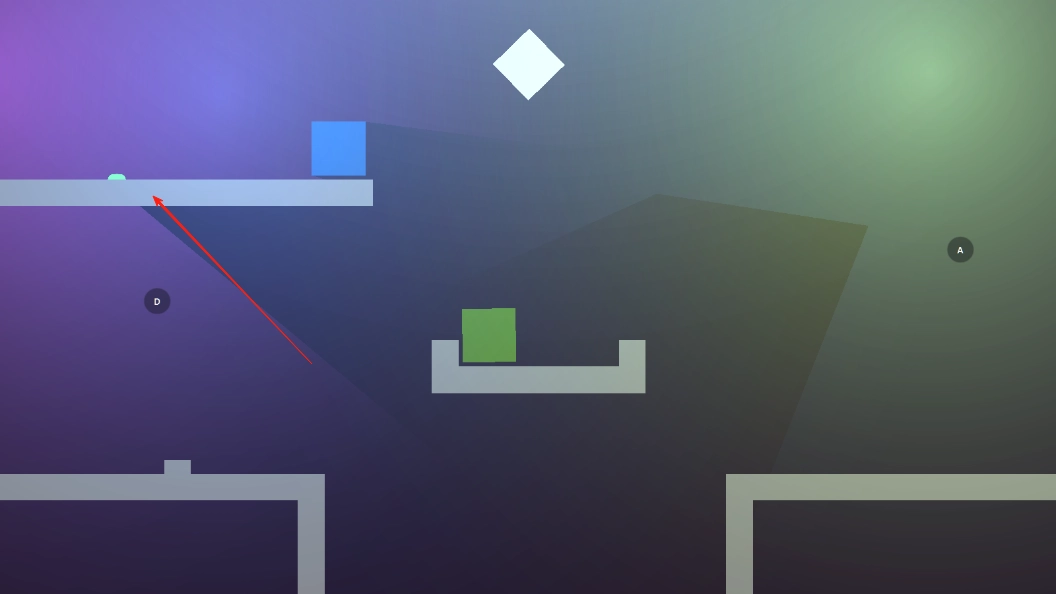 2、上方的灯影也可作为一个平台使用,先让两个方块移动到上方灯影处,接着让它们滑至最外侧的两个平台,随后交换位置来到上方平台,调整灯的方向,就能使两个方块相互碰撞。