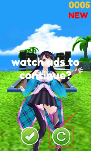 4、点击红框C按钮,拒绝观看广告继续游戏。