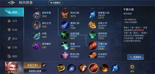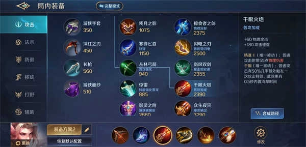 这套装备是传统射手的选择,相比另外两套出装,它的爆发稍弱,但持续输出能力更突出。由于技能伤害有所降低,普攻成为主要输出手段,所以不太担心大招会被名刀抵消。