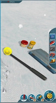 最后,可以使用钓洞旁边的撇渣器撇掉洞中的浮冰。