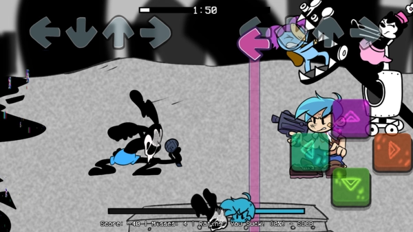 周五夜放克的错误化奥斯华兔模组是一款全新的错误化模组游戏,奥斯华是一只和米奇长得很像的兔子,在这个模组里,玩家要操控BF和奥斯华进行对战,只要精准跟上每一个节拍就能赢得游戏胜利,听起来是不是很有趣?感兴趣的小伙伴们快来体验这款游戏吧!