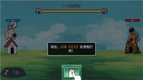 4、了解规则后,现在就来召唤【汪汪】击溃他们吧,如下图所示:点击狗头