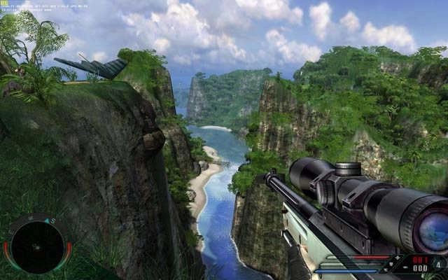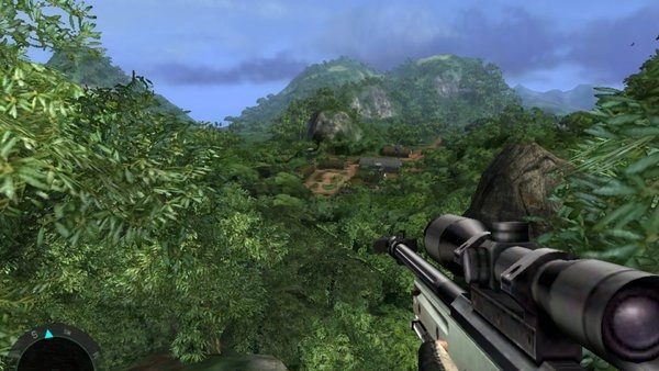 孤岛惊魂1最大的特点是3D引擎‘CryEngine’,多边形贴图(POLYBUMP)比凹凸贴图(BumpMing)更先进,在平滑的3D模型上贴上多边形贴图,除了会有凹凸质感外,更具备了多边形顶点位移的运算效果,但却不会增加多边形数目。