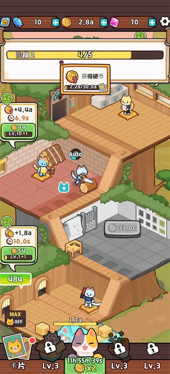 3、利用猫咪赚取足够多的金币,升级你的厂房壮大你的产业