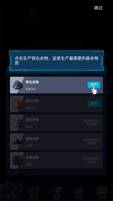 2、选择一个建筑,每个建筑都会生产不同的东西;