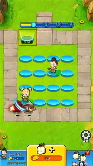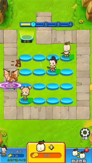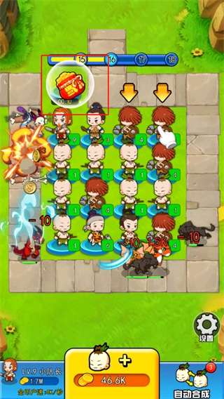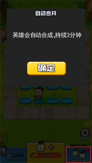 4、玩家还可以点击游戏右下角的按钮来进行英雄的自动合成,每次会持续3分钟;
