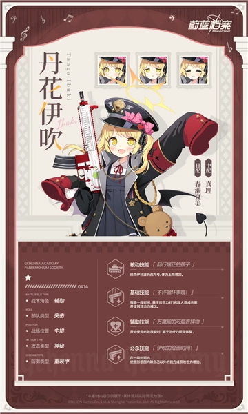 歌赫娜万魔殿的议员,万魔殿的吉祥物少女。她是万魔殿年纪最小的一员,因其独有的诚实和可爱深受众人喜爱。她是个品行端正的孩子,为了不给前辈们添麻烦,每天都在奋发向上地努力着。