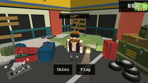 1、skins是商城,能使用游戏里获得的钱购买角色,play就是开始游戏,右上角显示的是你当前拥有的钱数。