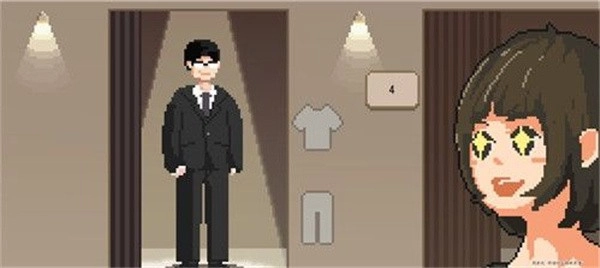 衣服和裤子按键各点两下换成西装即可。