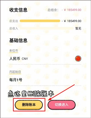 4、在该详情页面中点击【删除账本】按钮,即可成功删除账本~