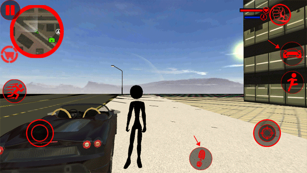 3、当火柴人靠近一辆车时,右侧会自动出现一个汽车图标,这是用于帮助火柴人上车的功能键。