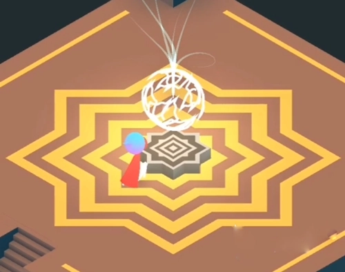 此时来到新场景中,玩家可以直接去点击发光小人,靠近它,进入下一场景。移动黄色建筑,走到黄色建筑上方的棕色方块,再将黄色建筑移动横截面,点击黄色按钮,最后移动一次建筑,让小人可以来到图腾处,本章节就到此为止啦!