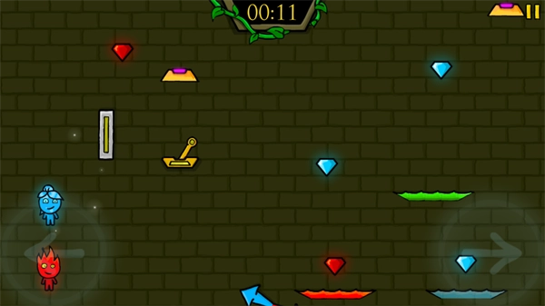 4、大型宝石关卡的难度比较高,需要控制冰火人互相配合着前进。面对不同属性的陷阱时,得先派对应的冰火小人去侦查一下,等确认安全了,再一起行动。