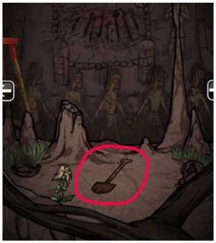 3、用铁铲挖开墙壁上的石块,获得水壶