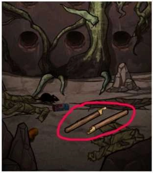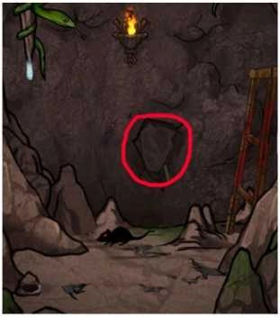 6、石门前有个被蜘蛛网挡住的背包,点击打开它能找到一枚方钉
