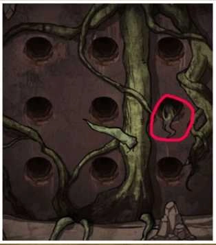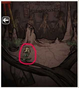 8、用木棍捅开被绿植覆盖的洞顶,等黄花开放后,点击黄花就能看到一个符号。