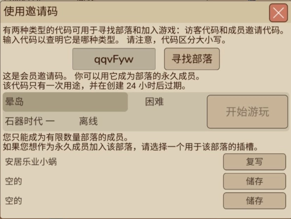 2.输入好友的世界邀请码,可选择单次加入(需世界主人在线)或永久定居(可随时无条件加入,每个求生者最多同时在3个世界定居)。