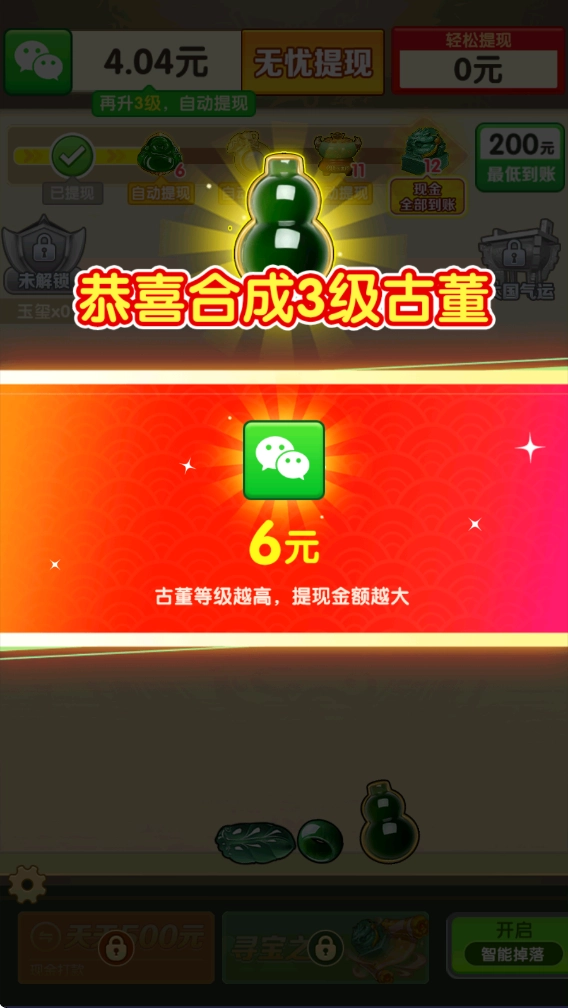 3、游戏中需要通过一步步的合成来获得更高等级的物品,合成出最高等级的玉玺还有额外的惊喜奖励哦。