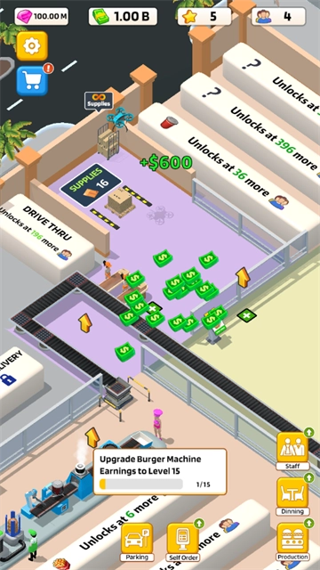 通过合理利用资源实现持续发展,还有汉堡、薯条、奶昔等各类美食等着你来解锁;提升服务效率,让顾客无需久候。