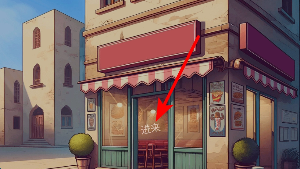 1、在游戏场景中,看到带有进来提示的美食店,点击进入店铺,开启美食店的经营之旅,为后续接待顾客、制作美食做好准备。