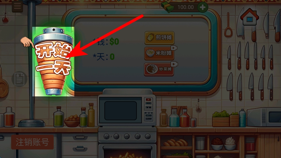 2、进入店铺后,找到开始一天的标识并点击,正式开启当天的经营,此时会进入接待顾客、制作美食的流程,开始一天的营业。