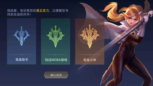 4、依据自身情况选择是MOBA新手还是大神身份,系统便会据此展开合理分配。