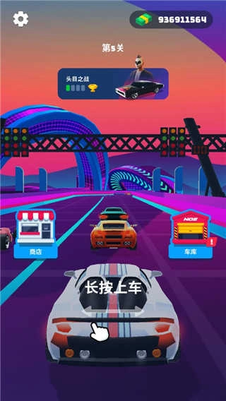 2、长按赛车能够使其不断加速;