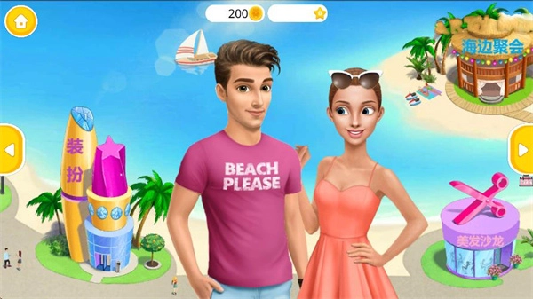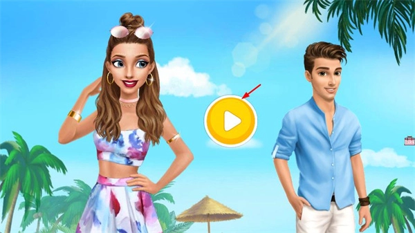 1、点击屏幕中央的黄色播放按钮即可启动游戏,挑选喜欢的角色形象进入海滩场景,开启趣味互动体验。
