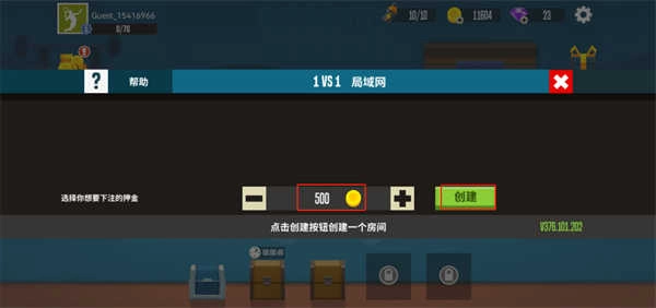 2、玩家创建房间时需设置下注押金,该押金最低为100金币,设置好后点击创建即可。