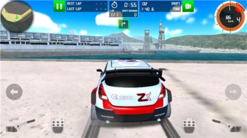 4、按住屏幕最下方的区域可以使车辆加速,屏幕两侧的按键用于控制车辆倒退,熟悉这些操作后就能轻松驾驭车辆。