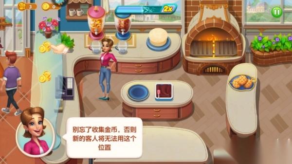 9、订单完成以后要注意收集桌上的金币,不然新的顾客将无法使用这个位置;