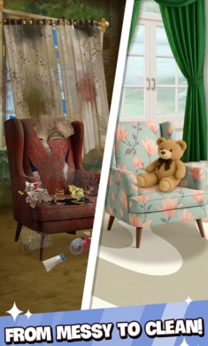 2、当清洁度达到100%时,房间会绽放出绚丽的彩虹光效,同时解锁对比图分享功能。游戏节奏轻松舒缓,操作方式简单易懂,仅需点击或拖动即可完成,非常适合用来缓解压力。玩家还能通过完成任务解锁全新的清洁工具与关卡,获取丰厚奖励并装饰自己的房间,从而让游戏始终保持持续的吸引力。