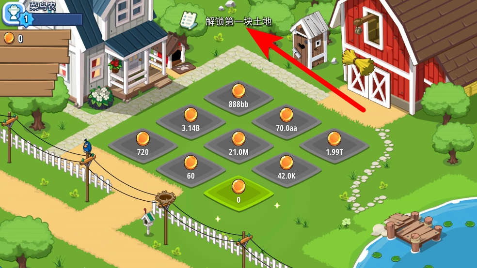进入后,第一步是解锁土地,根据界面提示完成操作,解锁第一块土地,这样就能为后续种植作物腾出空间,正式开启农场经营之旅。