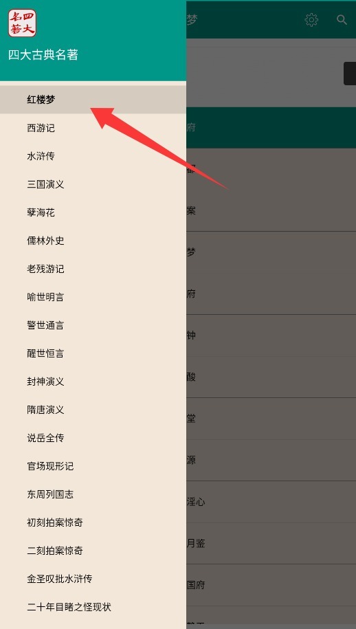 1、进入应用后,轻触界面左上角菜单栏,从经典文学分类中选取想听的名著作品。