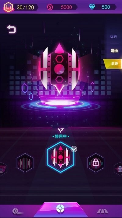 游戏中提供多种类型的电音球球可供选择,不同颜色的球球在滚动时会呈现出各异的特效,视觉效果十分炫酷华丽。