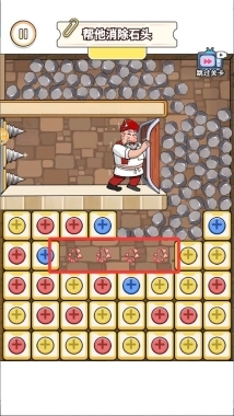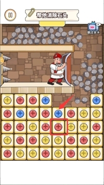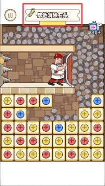 4、当消除进度条满格时顶部巨石会坠落,利用这个时机为国王开辟逃生通道即可通关。