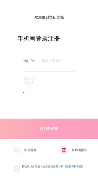 2、进入页面后,可填写手机号完成注册等相关信息,也能通过邮箱或百合网账号登录,登录前需勾选下方“我已阅读并同意”的协议。