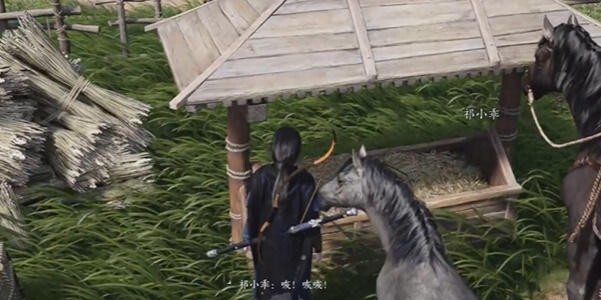 7、把这个萝卜给小马后,跟着它走到食槽这里,拿到祁民家驯。