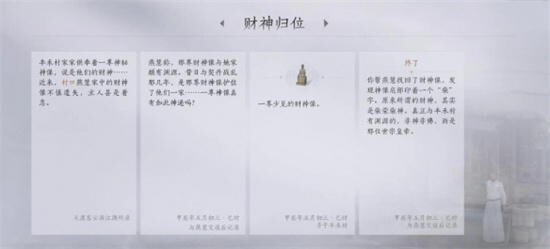 回到燕慧家中,将财神像赠予燕慧,结束与她的对话后,就能完成财神归位的任务。