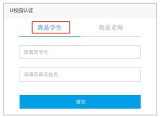 2、注册后登录完成初始认证:选择自己所在的学校后,点击【我是学生】,填写信息(学号、姓名)。