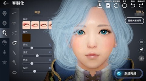 女性角色的眉毛、眼睛(含瞳孔、虹彩、隐形眼镜)、睫毛、眼妆、腮红以及嘴唇的形状与色彩均可进行调整。